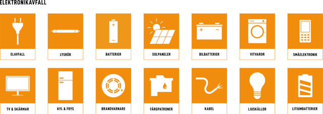 Exempel på avfallsskyltar och återvinningsskyltar