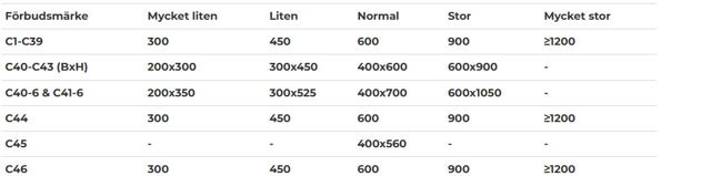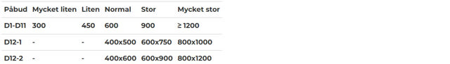 Se nedan tabell för rekommenderade storlekar för olika typer av vägar.