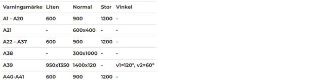 Blinkfyrar erbjuder alla sveriges vägmärken och skyltar i alla storlekar som används på väg. Vi är en helhetsleverantör som tillhandahåller alla vägmärken och skyltar både med egen text och utformning. I guiden nedan hittar du alla vägmärken och vilka storlekar och mått som gäller. Hittar du inte informationen du söker? Kontakta kundservice så hjälper vi dig att hitta rätt mått för ditt vägmärke.