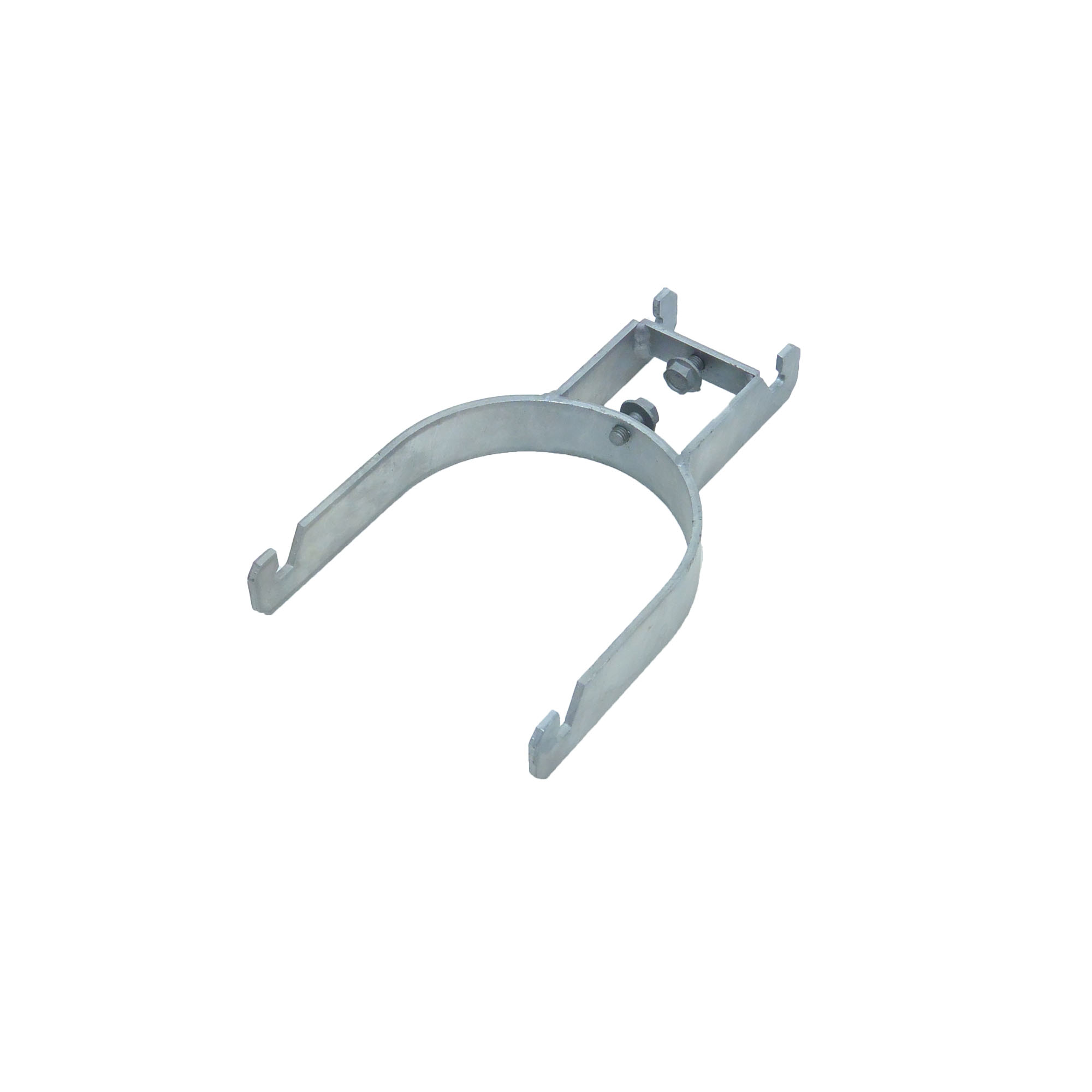 Dubbelklammer i varmförzinkat stål för runda rör.