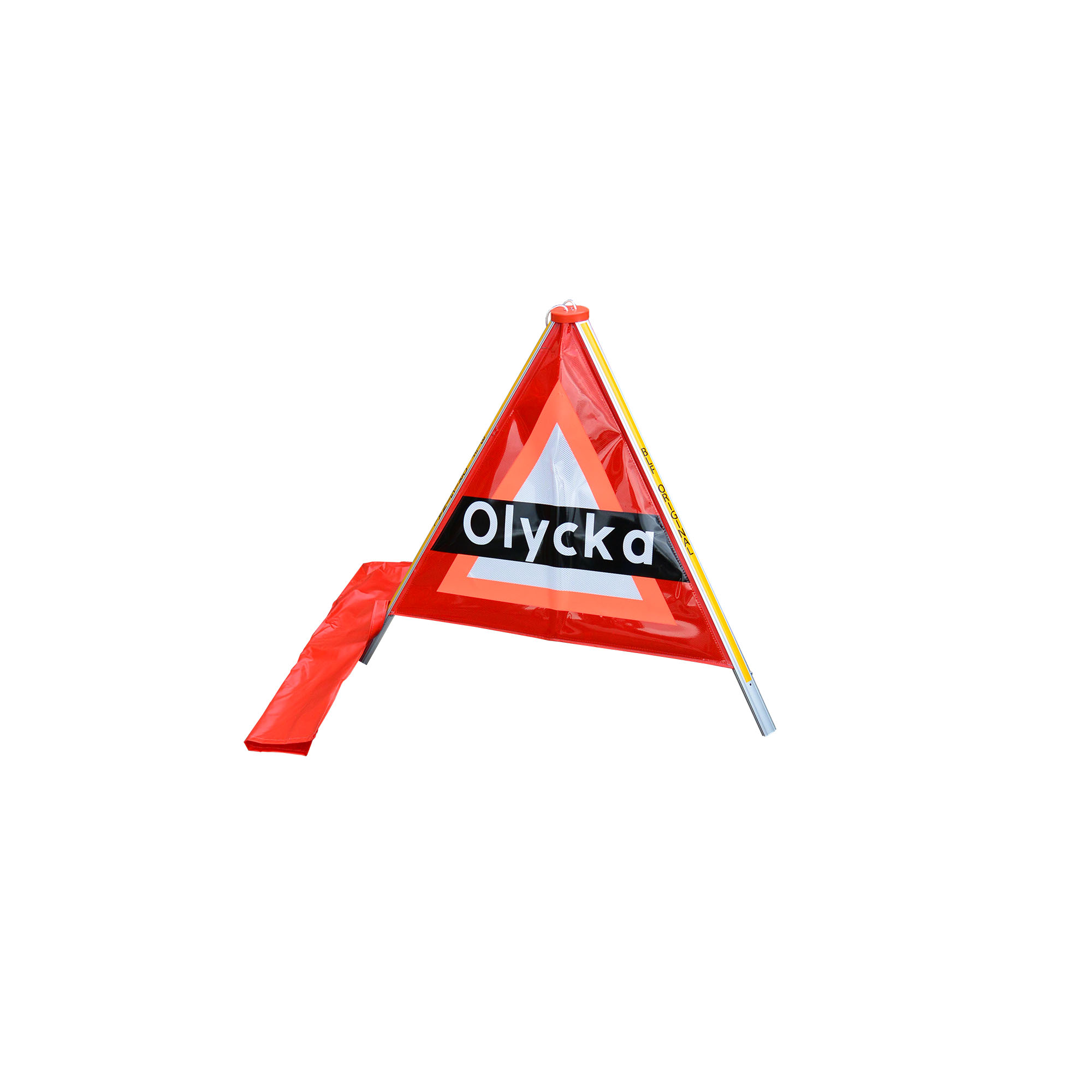 Ett stabilt och starkt varningstält som är lätt och smidigt att ta med sig även när det är ont om utrymme. Står stabilt tack vare lågt placerad tyngdpunkt. Med självhäftande reflex som är förstärkt med en söm för ökad tålighet. Levereras med praktisk bärväska.