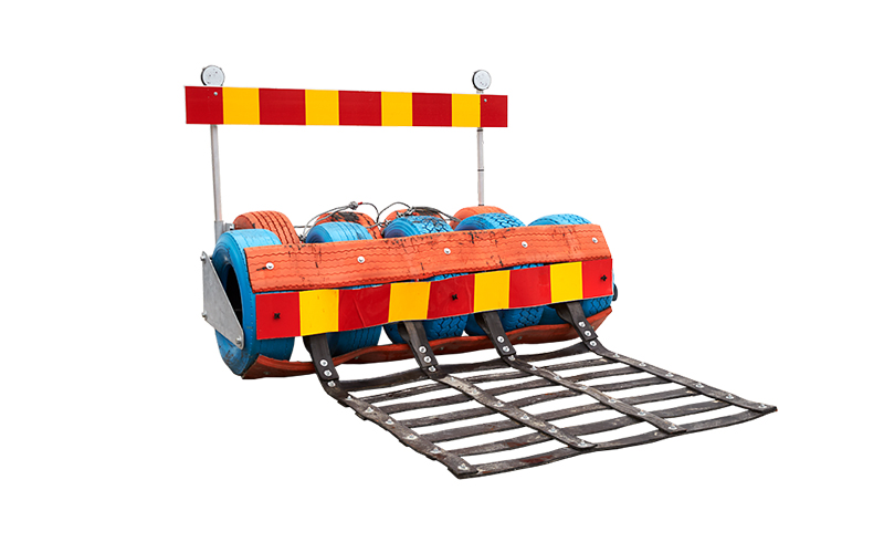 Nyutvecklad och modern däckbuffert som uppfyller Trafikverkets krav. I färgerna orange och blå.