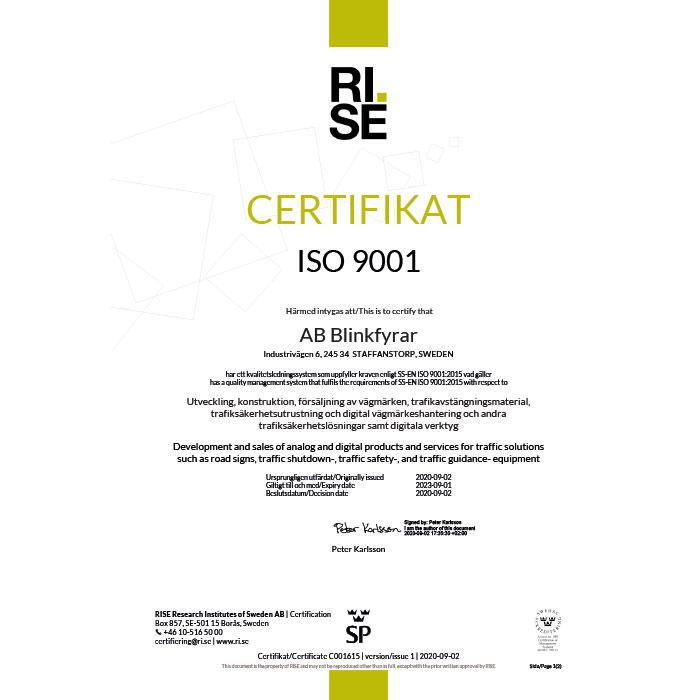 AB Blinkfyrar är specialisten på produkter och tjänster för trafiklösningar och digital skyltning och vi ser ett aktivt kvalitetsarbete som en självklarhet i vår dagliga verksamhet.
