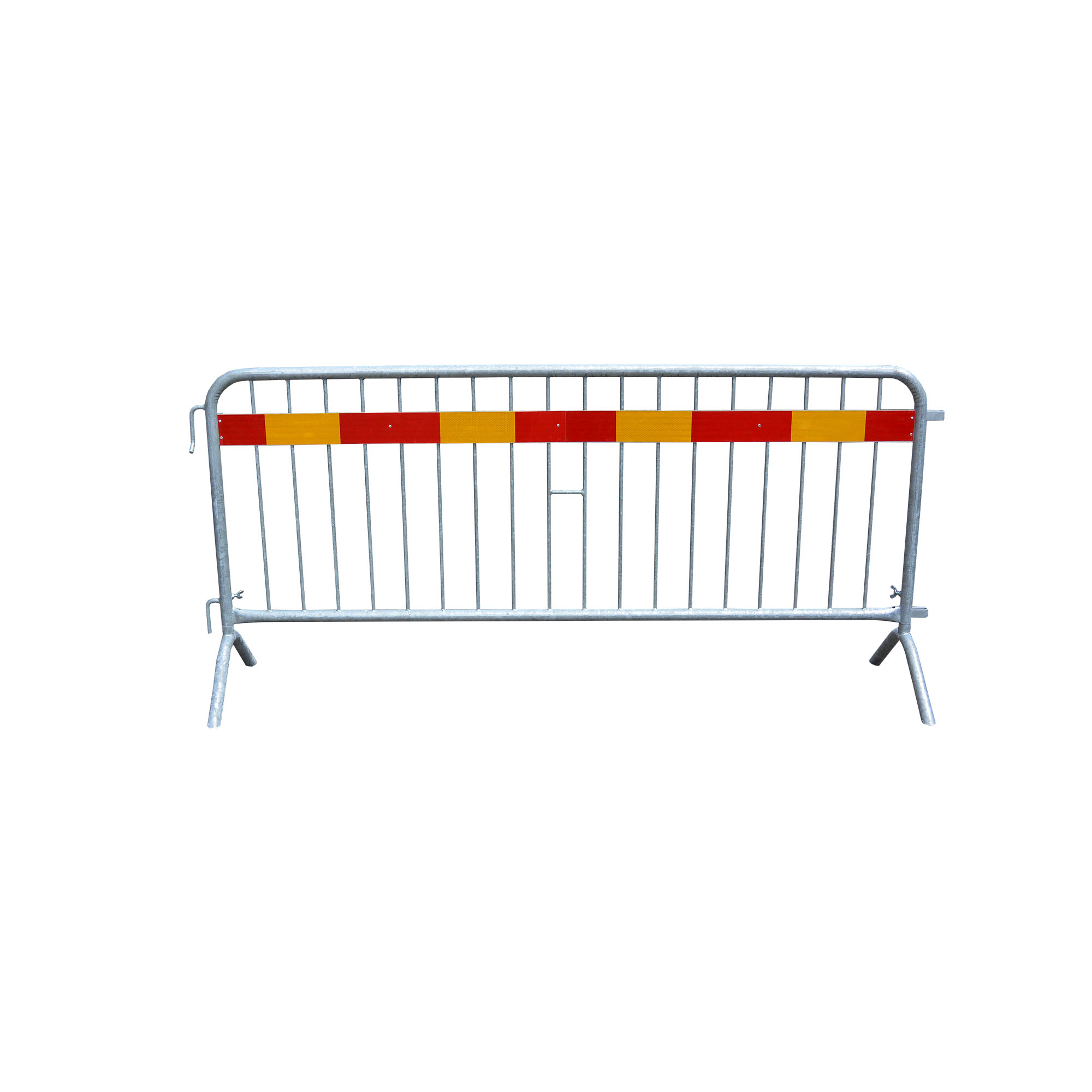 Avstängningsstaket med V-fot inklusive reflex. Tillverkat i varmförzinkat stål. Fötterna är vridbara för maximal stabilitet. Lagras och staplas på ett effektivt och platsbesparande sätt. Kopplas ihop med enkelt handgrepp utan verktyg. Längd 2400 mm Höjd 1100 mm Vikt 20 kg